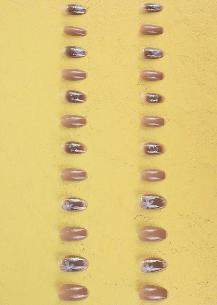 "Embrace the beauty of a garden with our Bloom Charm Press-On Nails. Each nail is adorned with delicate floral charms, creating a feminine and sophisticated look. This 24-pcs DIY nail kit is perfect for achieving a quick, salon-quality manicure from home. Sold by Pablo Mode, with availability across all of Pakistan."