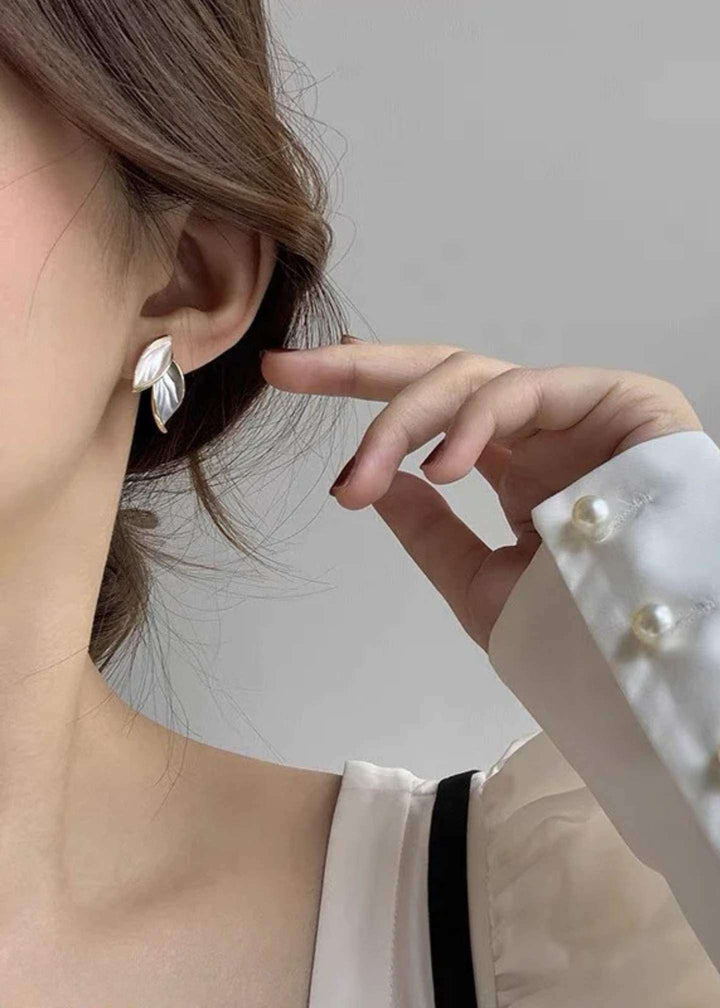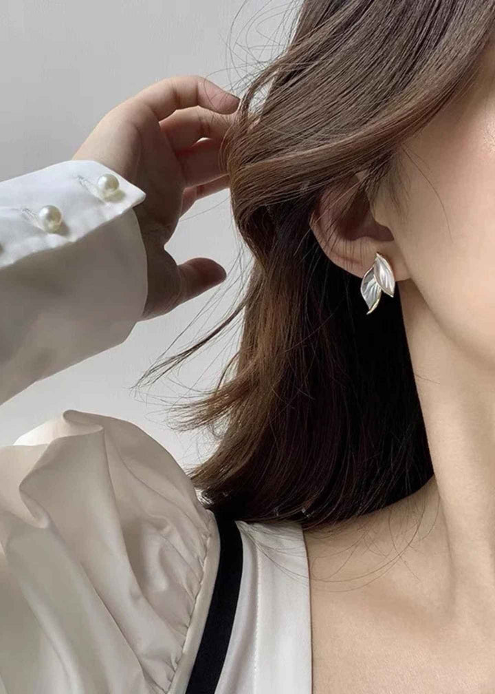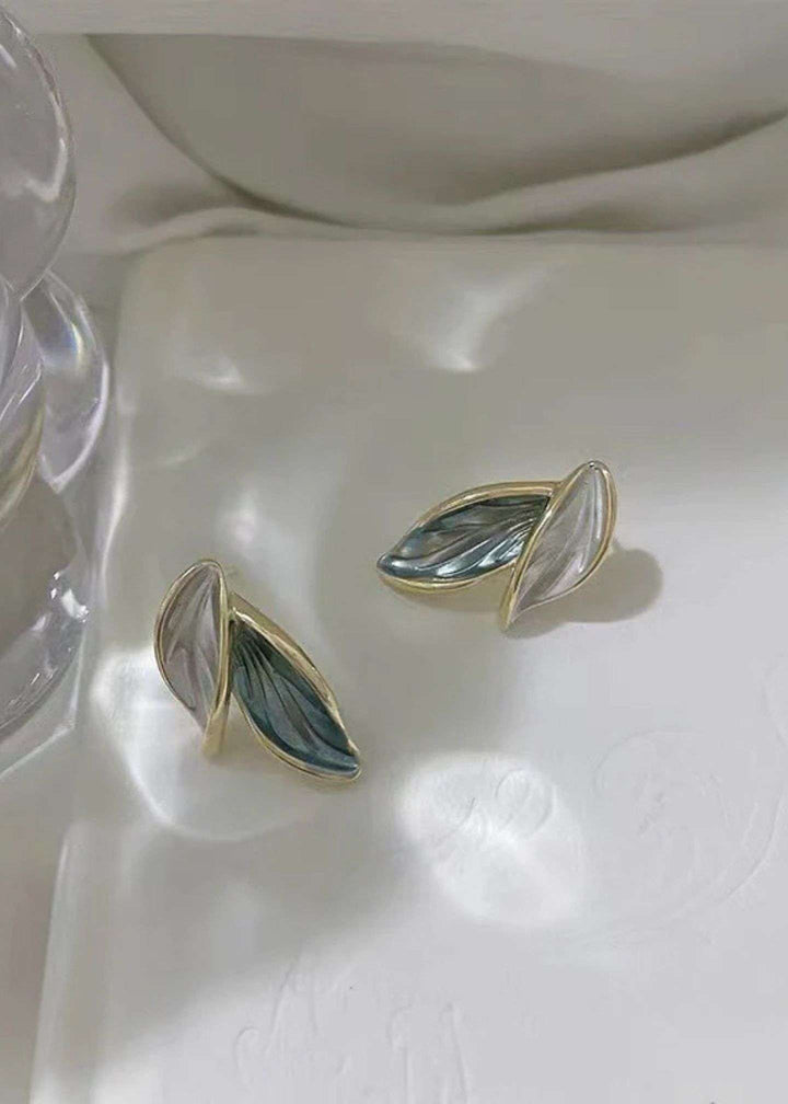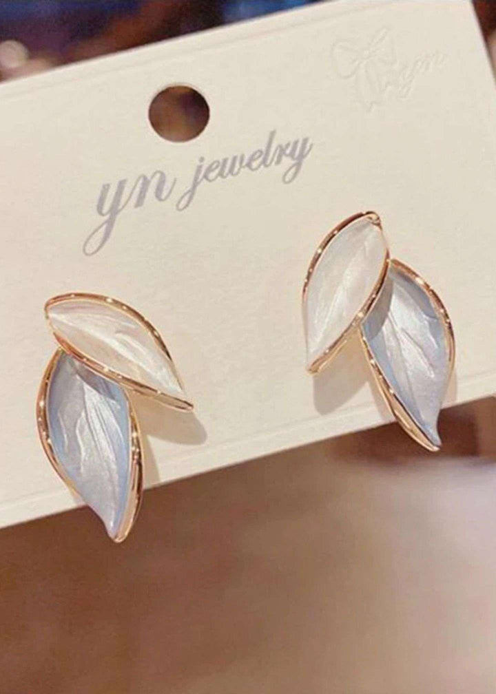 blue & white gold accent Leaf Stud Earrings