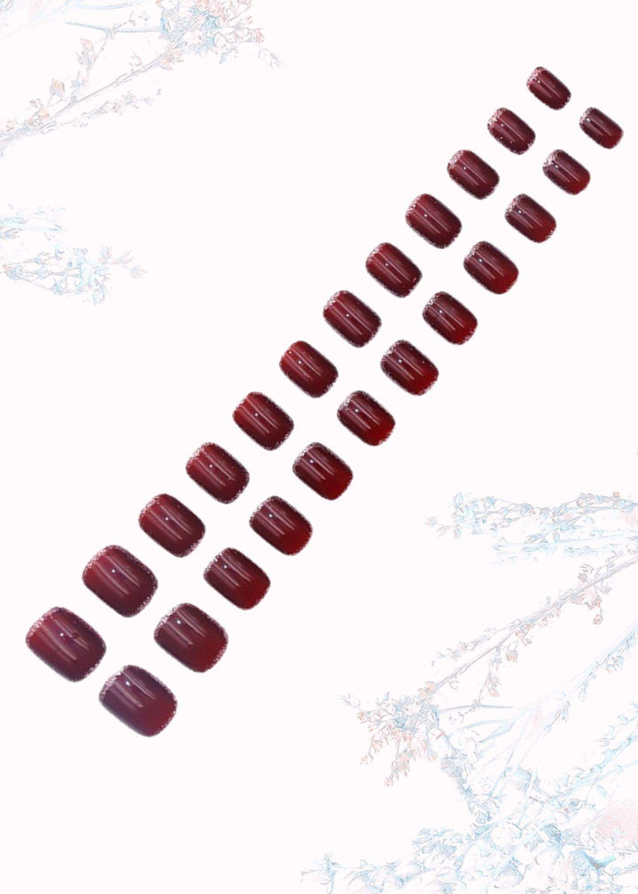Burgundy Glitter Tip Short Square Fake Nails – Short Square 24pcs