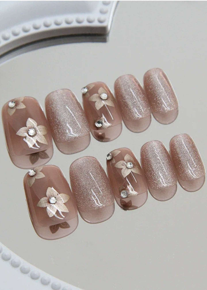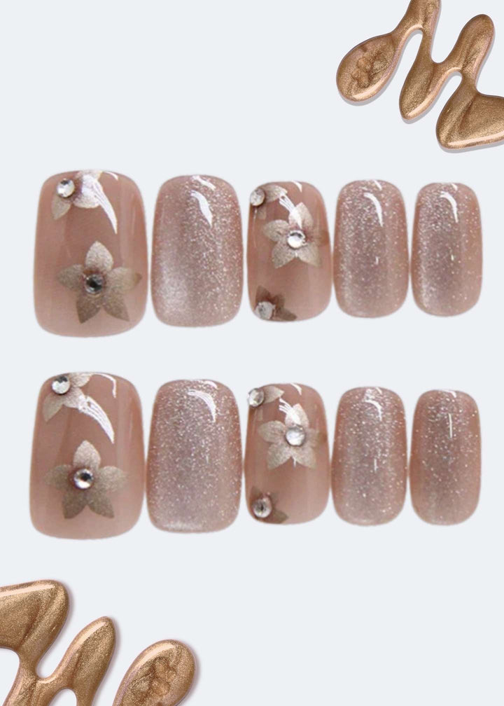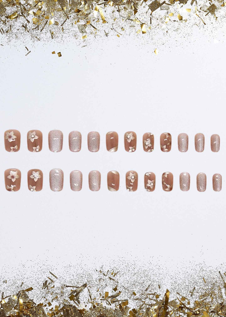 "Unleash a magnetic charm with our Cat Eye Champagne Shimmer Acrylic Nails 24-piece set. The deep, lustrous champagne hue is enhanced by a dynamic cat-eye effect that shifts with the light. This trendy design offers a sophisticated and glamorous manicure, giving you unbreakable confidence for any event."