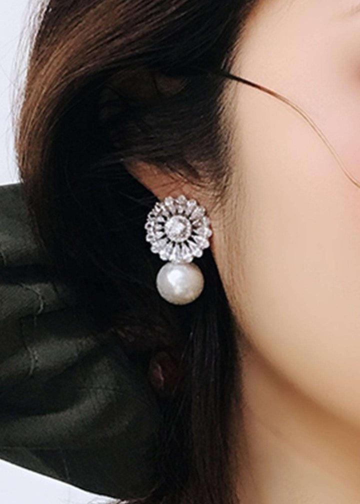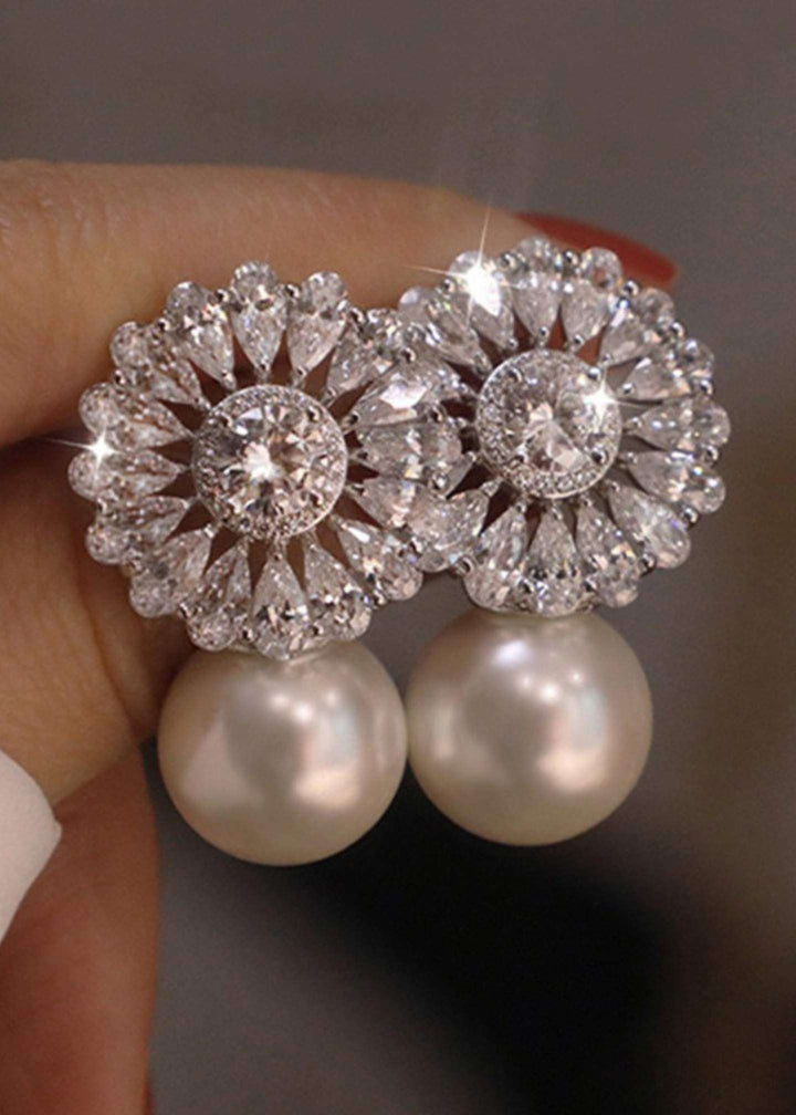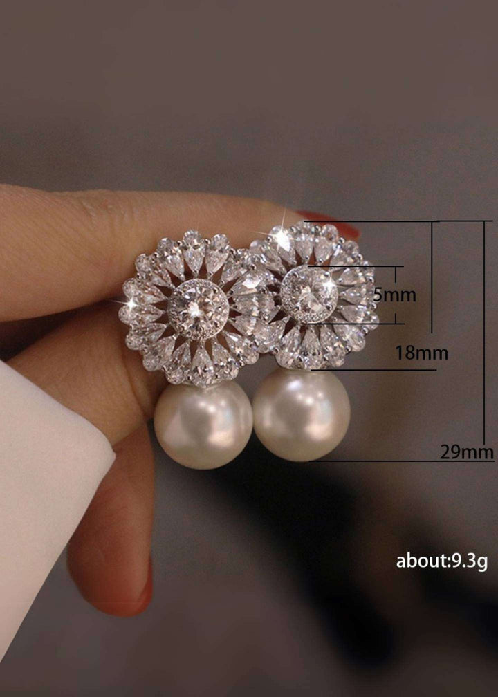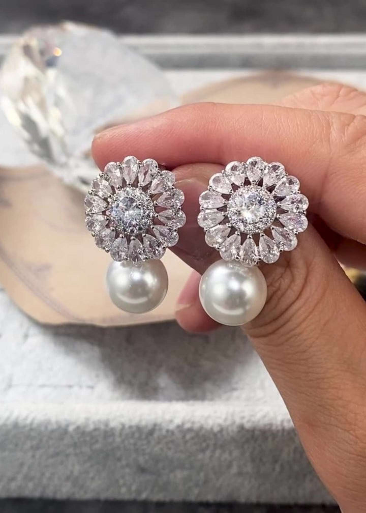 “Dazzling Diamond Zircon Pearl Earrings: Exquisite design with classic pearl and artificial diamonds flower, excellent jewelry gift ideas for mom or to treat yourself. Shop affordable jewelry in Pakistan.”