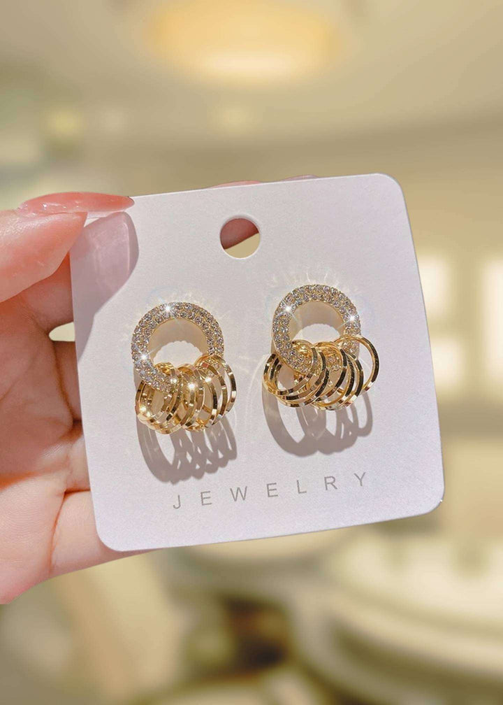 “Gold CZ Hoops: Shine in style with these gold CZ double interlock multiple hoops earrings—crafted from hypoallergenic materials and designed for lightweight, all-day comfort. A perfect blend of sparkling gold plated Artificial diamond hoop earrings charm and timeless elegance, ideal for gifting or adding Pakistani flair to festive and everyday glam. These Stunning gold CZ double interlock multiple circle stud earrings for women in Pakistan offer affordable luxury with locally-inspired style for every occasion. Discover the beauty of elegant gold plated CZ multiple hoops earrings for wedding wear online in Pakistan—quality you can see and feel.”