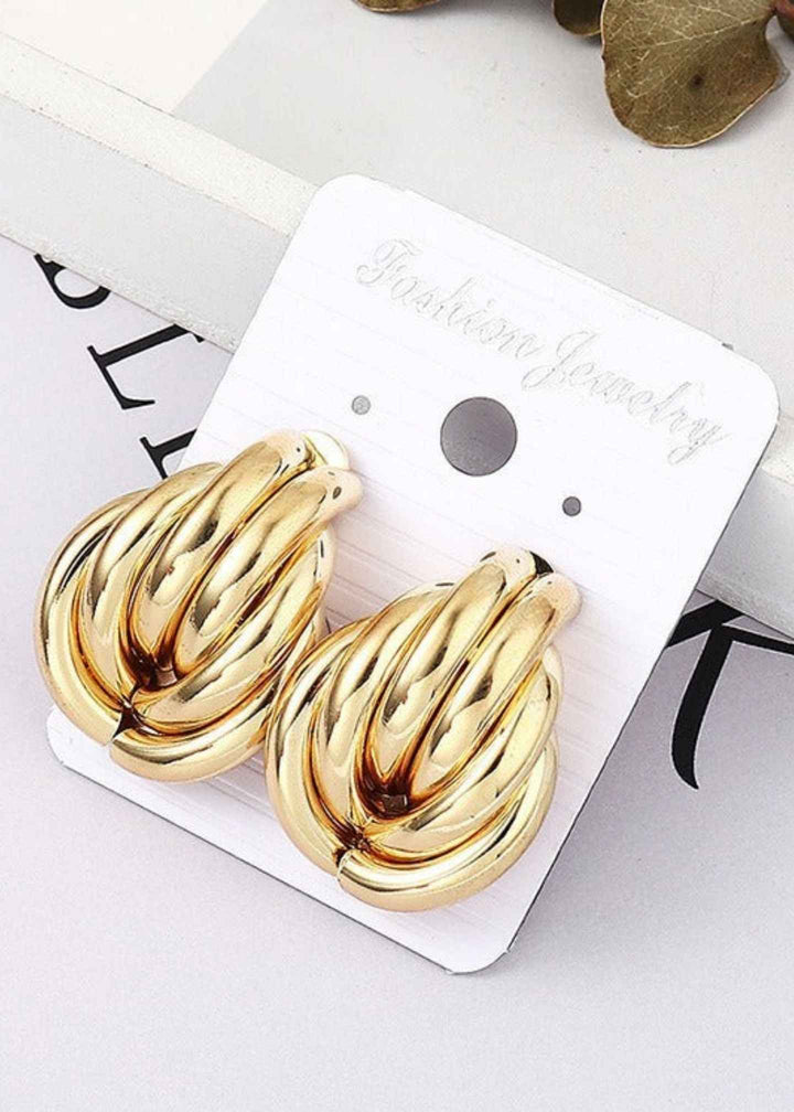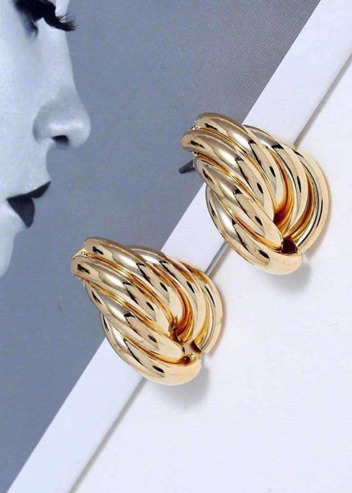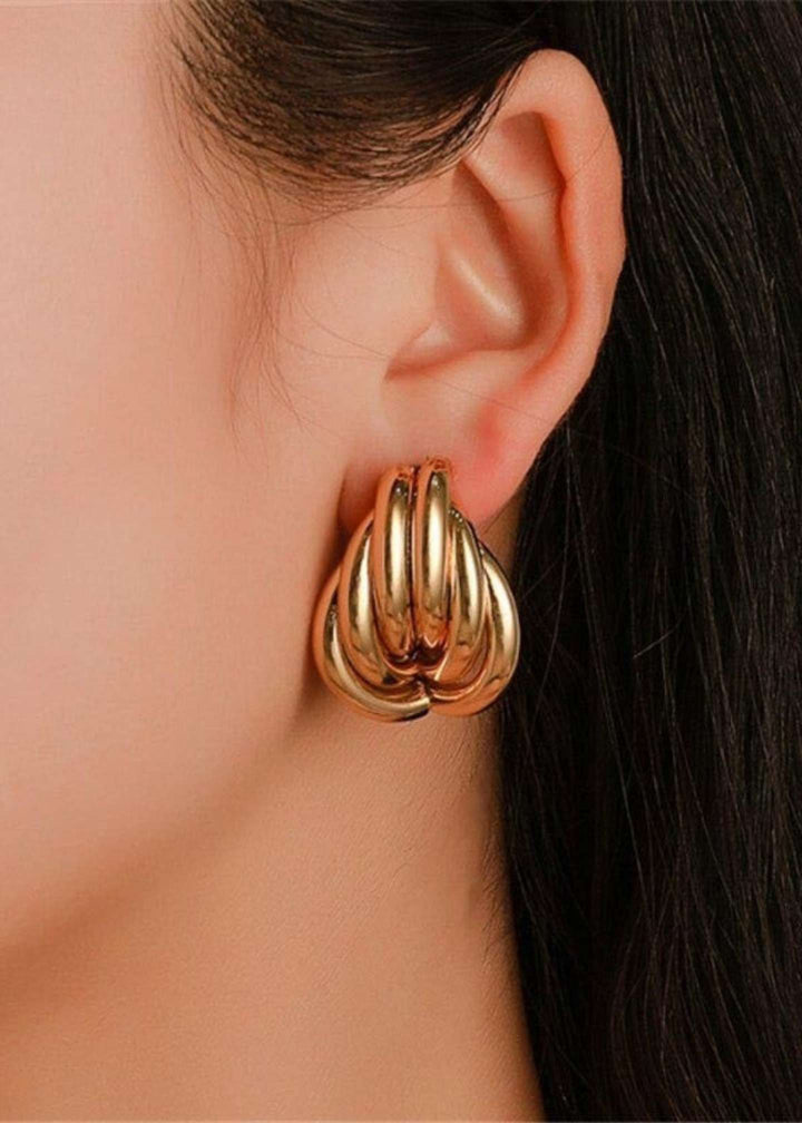 βChic Gold Chunky Hoop Earrings: Featuring a unique ribbed abstract design, these statement hoops add instant style. A trendy jewelry gift for her in Pakistan, showcasing the latest 2025 earrings design.β