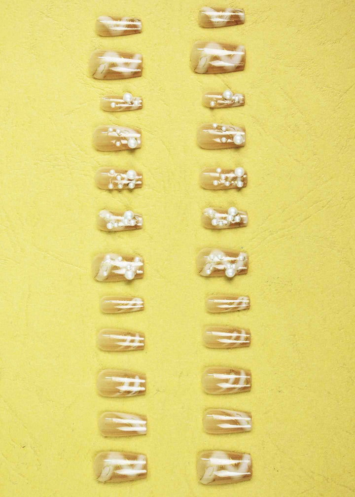 "Adorn your nails in pure elegance with our 24-pcs of Gold Silk Pearl Reusable Nail Wraps. Featuring a silky gold texture and delicate pearl accents, these wraps offer a sophisticated look. Made for multiple uses, they provide both sustainable style and timeless beauty. Purchase directly from Pablo Mode; we deliver everywhere in Pakistan."