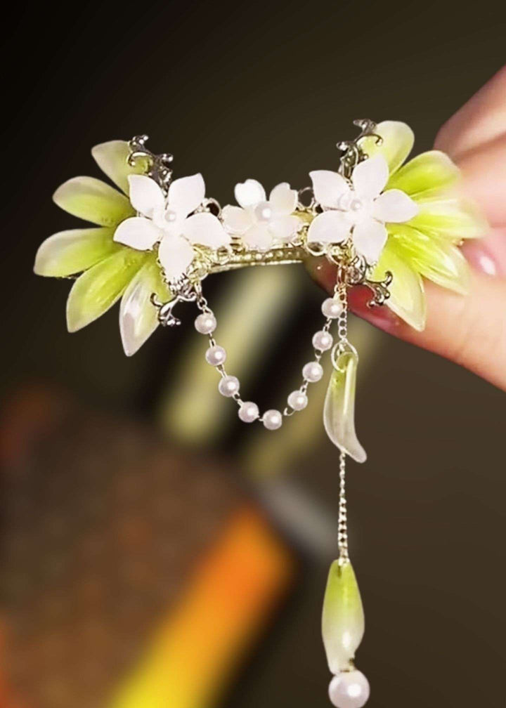 Pearl & Floral Hair Clip with Dangle Chains-PM-HAC-40014 (1)