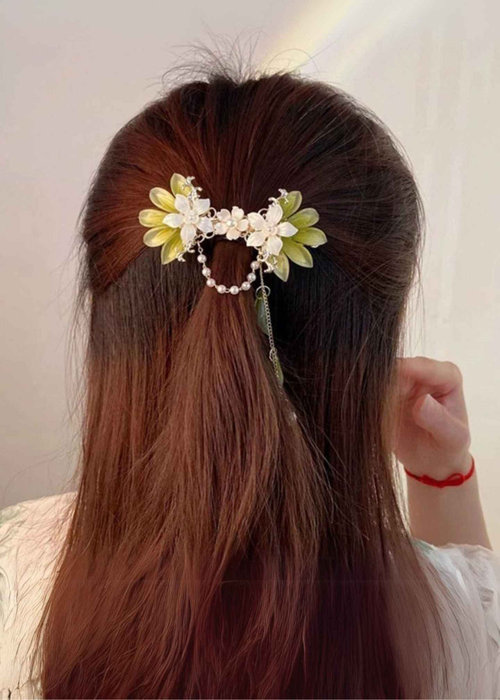 Pearl & Floral Hair Clip with Dangle Chains-PM-HAC-40014 (5)