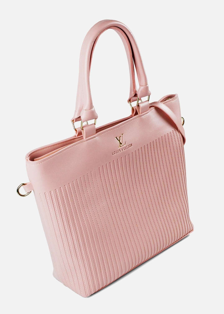 Distinct Attributes of Product:Primary Use: A chic and versatile bag suitable for daily use, professional settings, casual outings, and stylish events. Color/Design Specification & Availability: The bag is a soft, blush pink color with a pleated design that adds texture and visual interest, featuring gold-toned accents and a minimalist look. Availability is subject to the specific retailer. Designed for trendsetters: Ideal for individuals who prefer a refined, elegant aesthetic, this bag appeals to those seeking a sophisticated accessory that is both modern and timeless. Perfect for Work and College: Its structured shape and spacious interior make it a practical choice for carrying books, a tablet, or work essentials, making it a great option for working women or college students who prioritize both style and functionality. Adjustable & Comfy: The slender handles are comfortable for hand or arm carrying, and the option to add a shoulder strap (sold separately) provides versatility for all-day use. Benefits: This bag adds a touch of subtle elegance and texture to any outfit. Its spacious and structured interior keeps items organized, while the soft pink color and gold hardware offer a delicate and luxurious feel, making it a perfect blend of style and practicality. |
