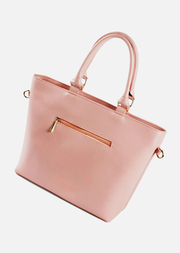 "Roselle Tote Bag: A stylish, durable, and versatile handbag in trendy pink. Made with faux leather, fine zippers, and adjustable straps, it’s perfect for everyday use, work, and shopping. Spacious & fashionable!" |