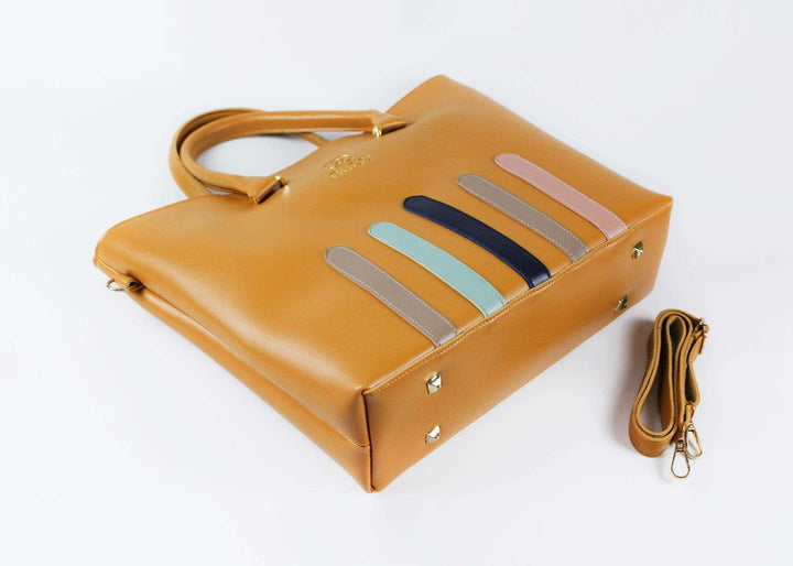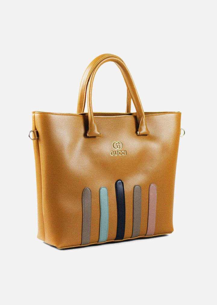 Are you searching for designer’s inspired tote bags for women in Pakistan? Here comes the Saffron Gold Multi-Stripes Tote Bag-the most luxurious, inexpensive tote bag. It makes the smoothest transition from a college backpack to an office bag, making it a really good buy for anyone in need of an elegant PU leather tote bag. This striped tote merges comfort and class; it has ample room for everything you need with hardly any compromise made in terms of elegant appeal.