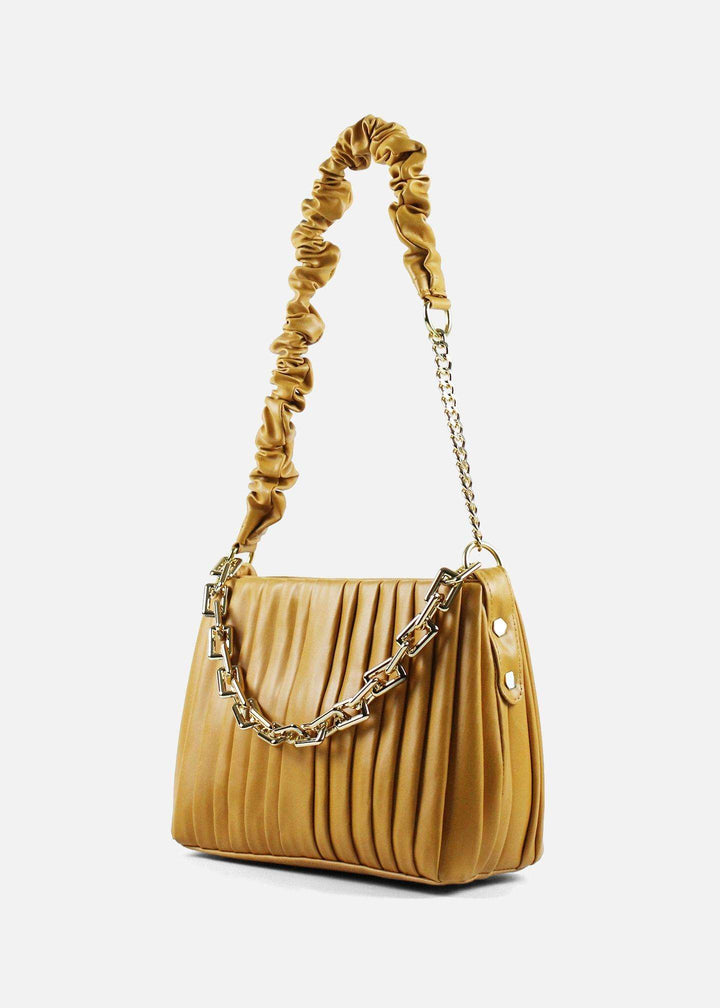 One such perfect combination of luxury and style for the forward-thinking, fashionista woman in Pakistan is the Saffron Yellow Shoulder Bag With Gold Chain. This chic yellow shoulder bag with golden chain is designed excellently combined with a chunky gold chain and pleated ruched design; it’s truly a stunner on anyone who will wear it. Whether you are looking for a trendy & best mustard yellow leather shoulder bag to wear with your formal attire or a chic bag for an evening affair, this saffron yellow pleated ruched shoulder bag with gold chain should definitely find its way into your collection.