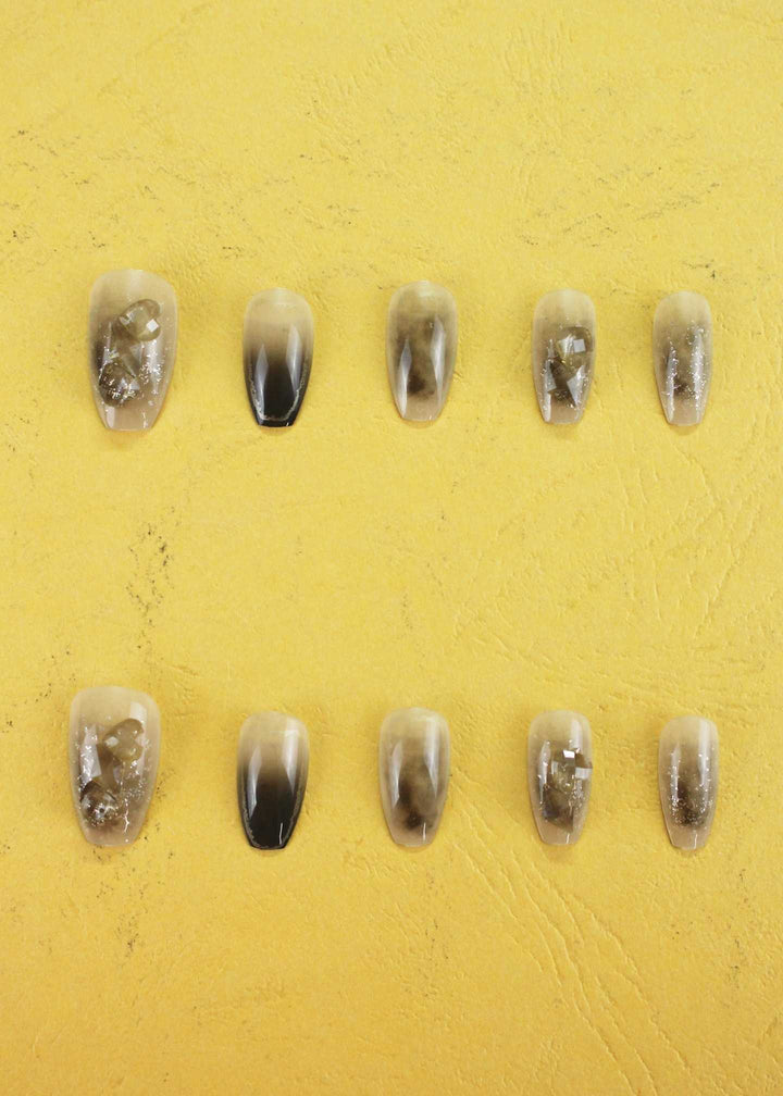 "Achieve a mysterious and sophisticated look with our Smoky Luxe Nail Extensions. The subtle, smoky gradient effect provides a chic and modern manicure. These24-pcs high-quality press-ons are designed for a seamless fit and long-lasting wear, perfect for any formal event. The Pablo Mode collection, deliverable everywhere in Pakistan."
