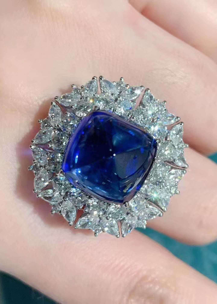 “Introducing the blue CZ cabochon cocktail ring, a blend of elegance and comfort. Set in high-quality sterling silver, the vibrant blue cabochon is complemented by sparkling CZ stones. Designed for all-day wear, its skin-friendly materials cater to those seeking affordable luxury. A versatile accessory that aligns with Pakistani fashion trends.”