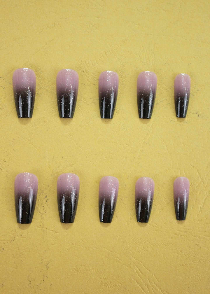 "Command attention with our Twilight Glow Long Coffin Nails. This 24-pcs set features a dramatic coffin shape with a mysterious, glowing finish. Perfect for evenings out, these press-on nail extensions provide a bold, fashionable statement with an easy, at-home application. Shop Pablo Mode for nationwide delivery across Pakistan."